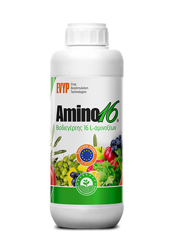 Amino16 یک محرک رشد کاملاً گیاهی با غلظت بسیار بالا است که شامل ۱۶ اسید آمینه نوع L (در مجموع ۱۹٪، و ۱۱٫۳٪ آزاد) و ۳٪ نیتروژن آلی بوده و بهطور انحصاری از پروتئینهای گیاهی غیرتراریخته تولید شده است. pH پایین آن (۳.۰) موجب جذب سریع و واکنش فیزیولوژیک فوری پس از مصرف میشود. Amino16 که دارای تأییدیه ECOCERT است، برای کشاورزی معمولی و ارگانیک مناسب میباشد.